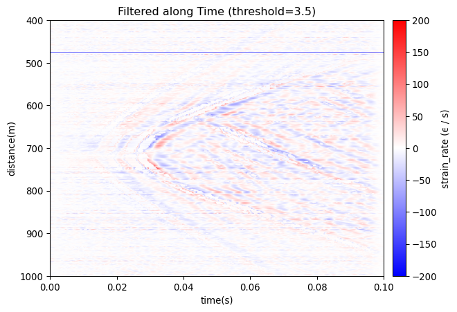 ax "Filtered along Time (threshold=3.5)"); ax.set_title(